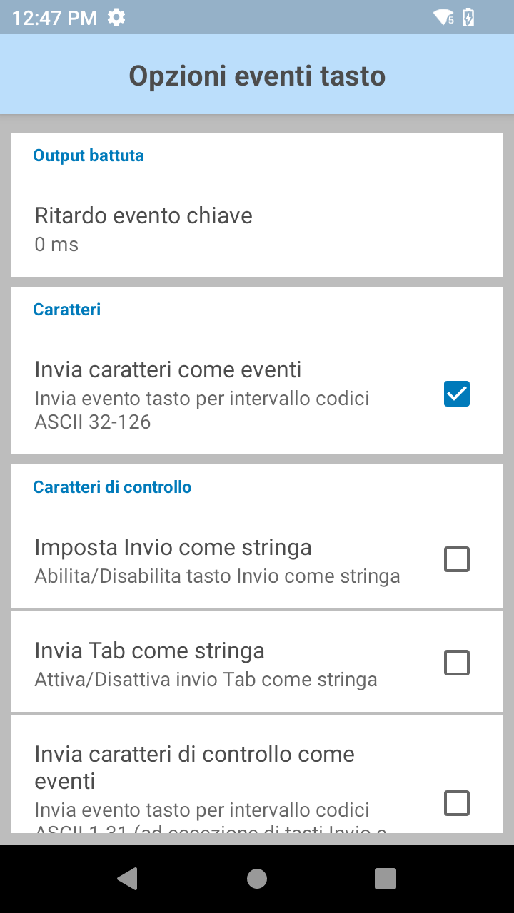 Mettere la spunta su "Invia caratteri come eventi"